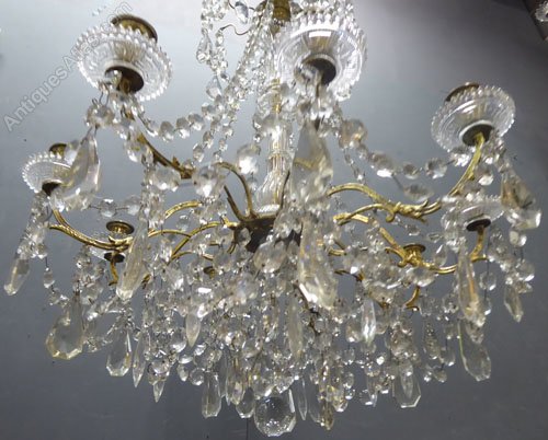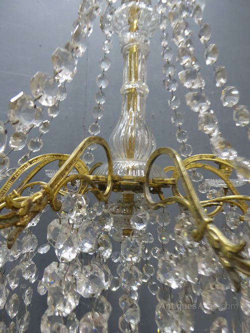 A Stunning 3 Branch Brass and Crystal Chandelier