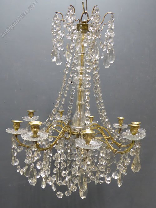 Ref 7447 - 19th Century 9 arm brass Napoleon III antique French chandelier with original clear crystals. For candles or can be wired. Circa 1860.