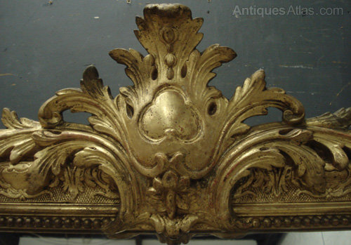 Ref 4782 - Antique French Mirror - Napoleon III original gilt on red gesso crested overmantle. Original glass with a couple of tiny black spots. Original panelled glass. Circa 1880.