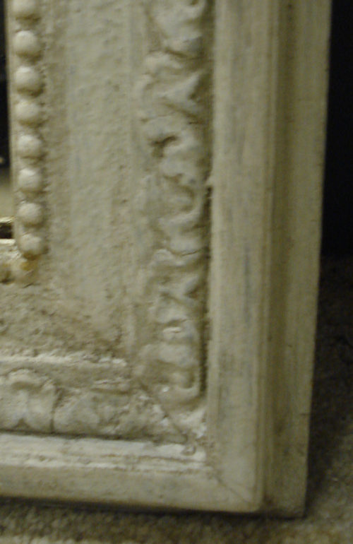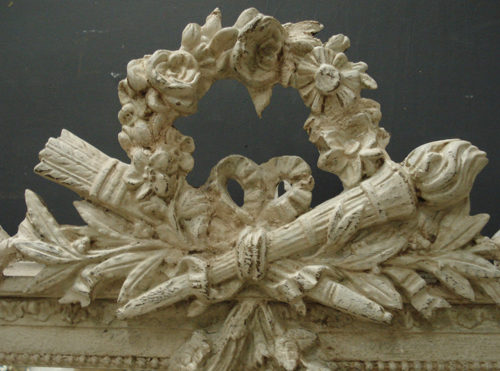 Ref 3508 - Antique French mirror - Small distressed off white painted crested mirror with swag decoration. Original lightly patinated glass and pine board back. Circa 1880.