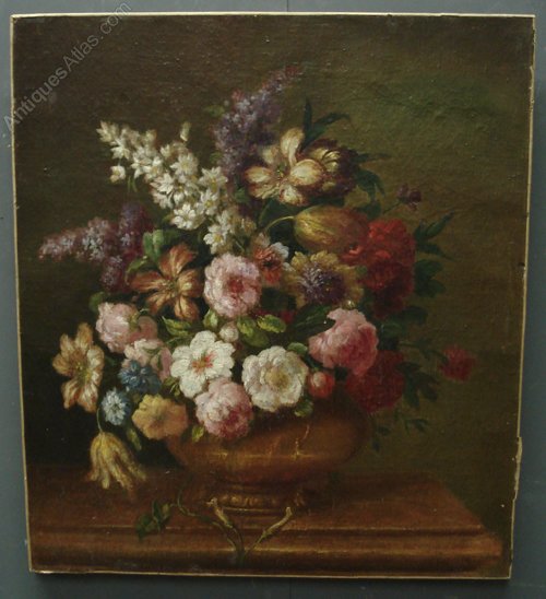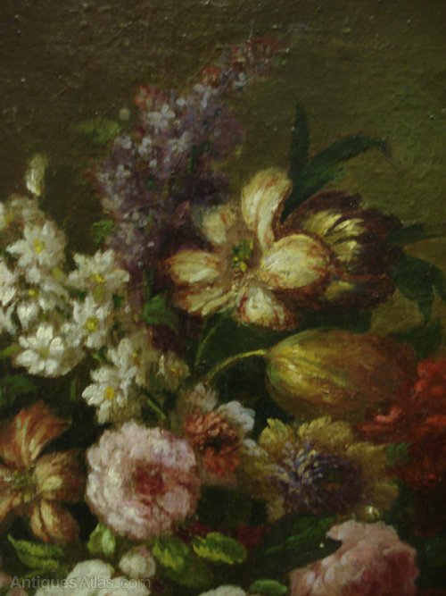 Ref 5530 - Antique French oil on canvas still life of flowers. Professionally relined. Circa 1900.