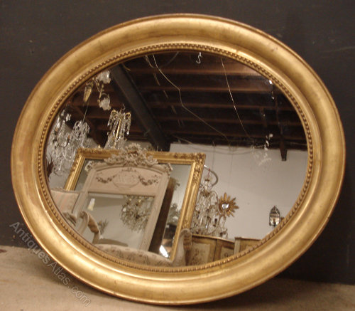 Ref 4696 - Antique French Mirror - Gilt on red Louis Philippe oval mirror. Original glass. Original pine back. Circa 1840.