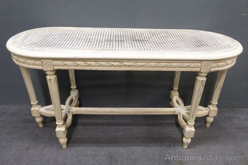 Antique French painted stool with cane seat