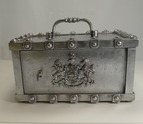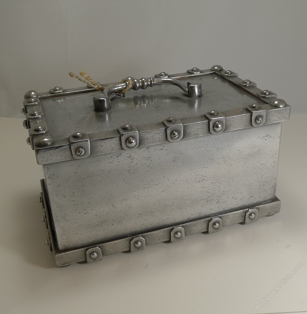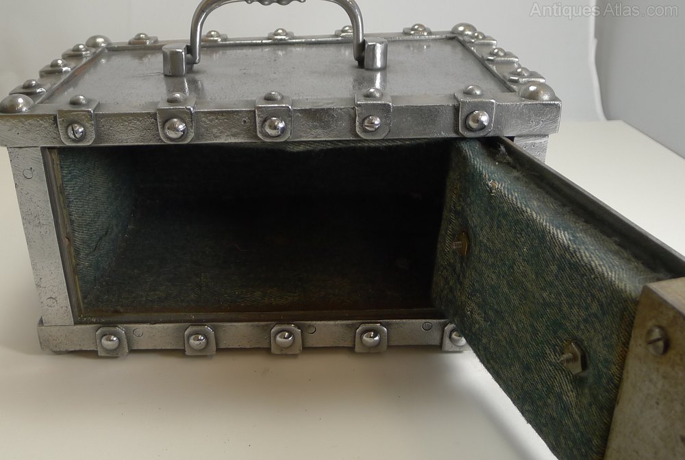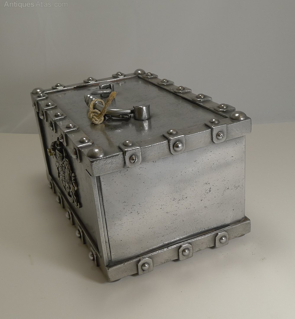 The cast iron has been professionally re-polished to create a modern industrial looking gem. This incombustible safe is lined inside, the lining being instrumental in keeping the items inside safe from fire. These boxes were used for important documents or antique jewellery, and were often used by diplomats travelling.
