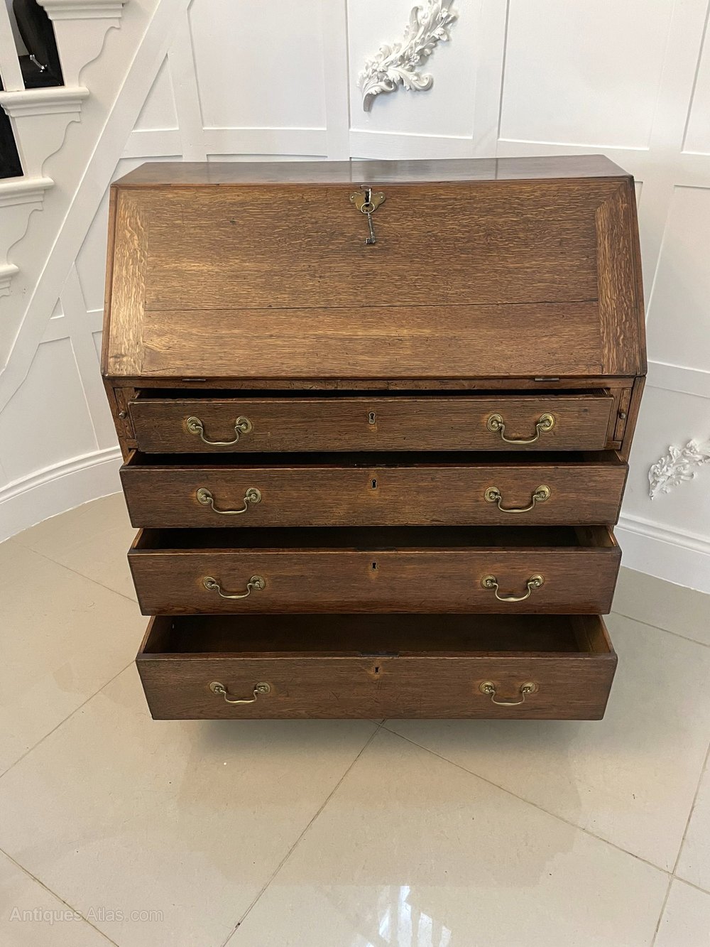 Antique George III Quality Oak Bureau