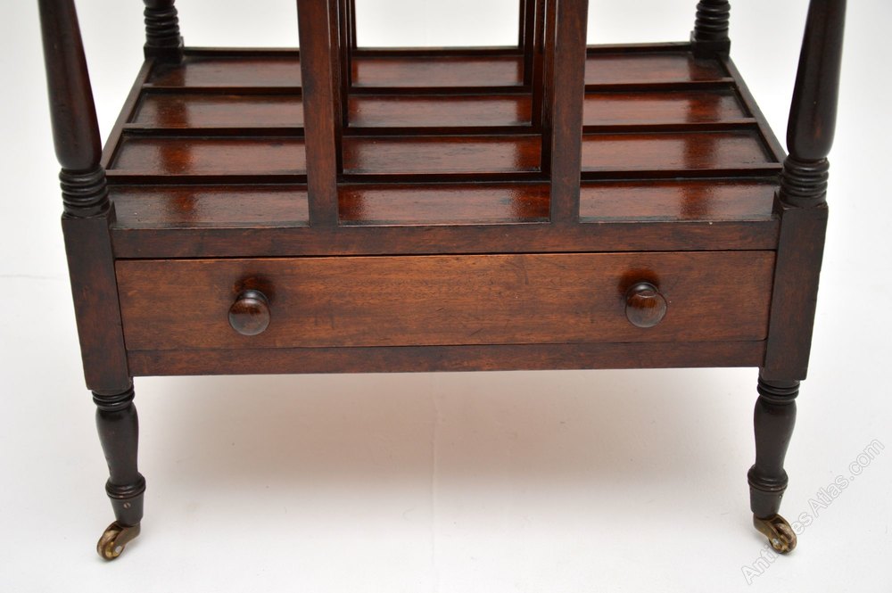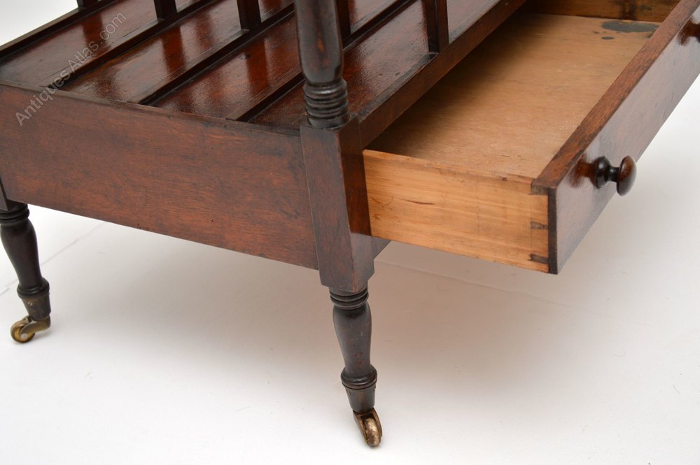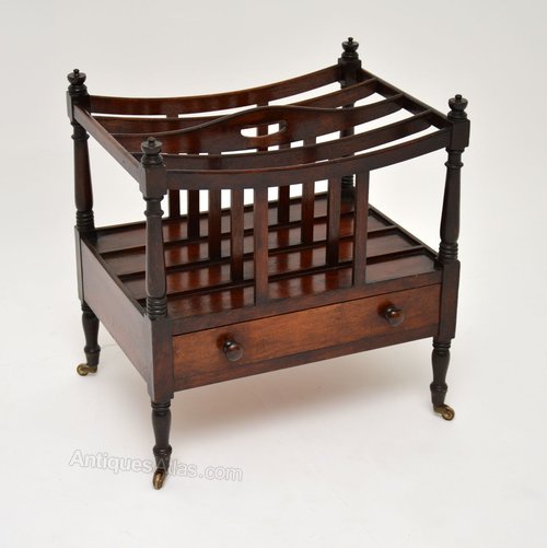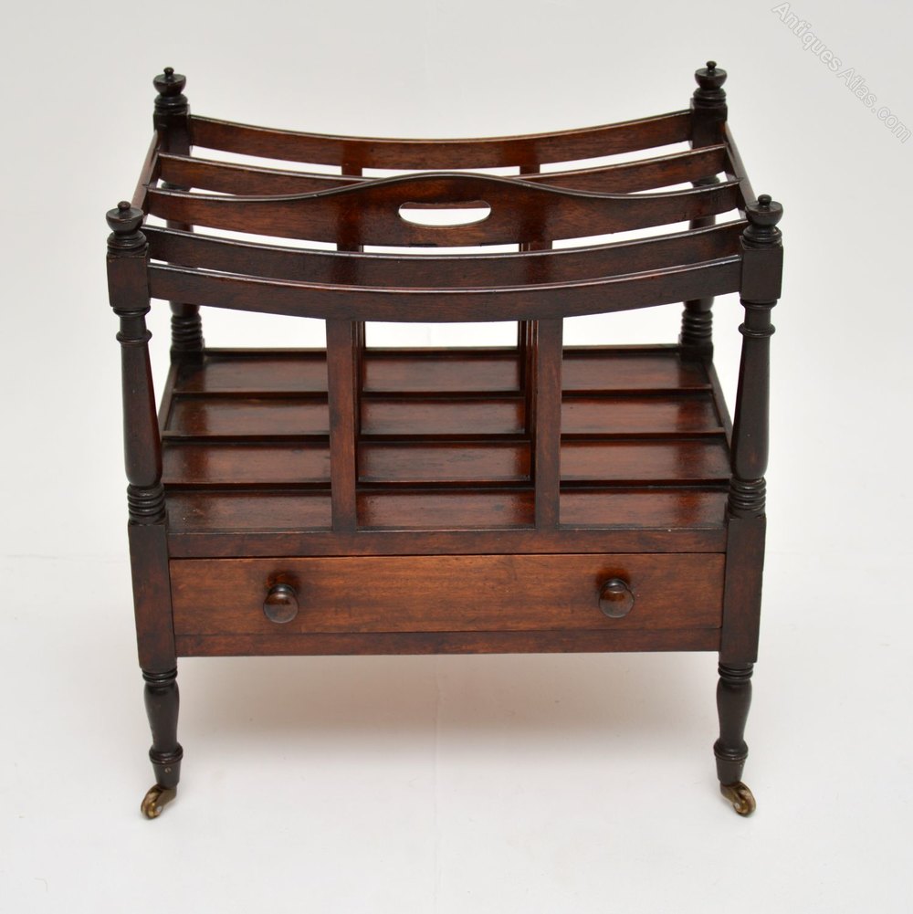 A beautiful and practical antique Canterbury newspaper / magazine rack in solid mahogany. This dates from around the 1810-30 period.