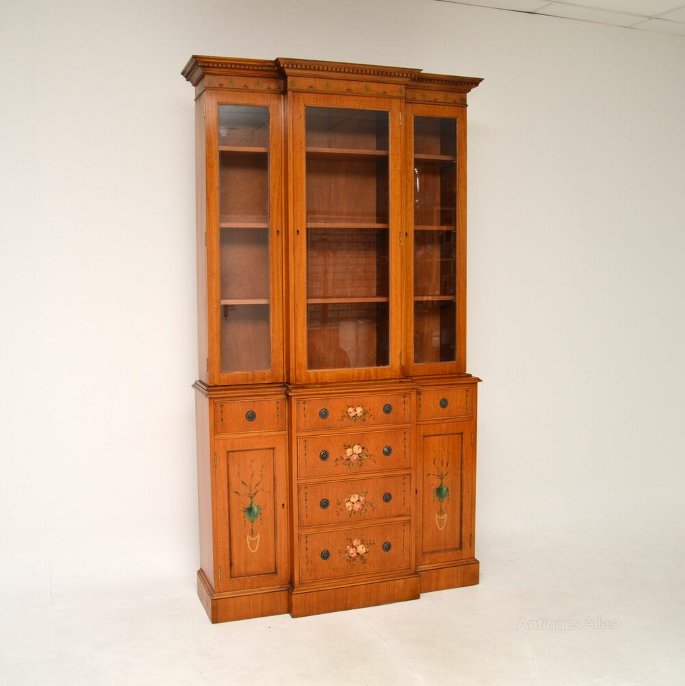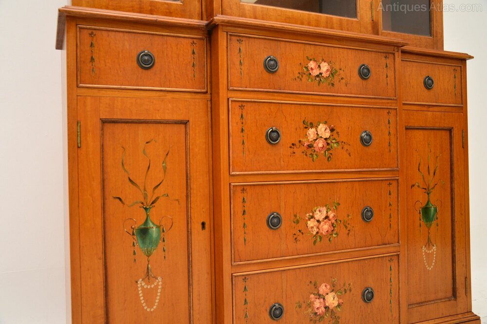 The quality is superb, this is a useful size with lots of storage space, yet is not too imposing. The satinwood has a beautiful colour tone and patina, there are wonderful painted floral decorations throughout.