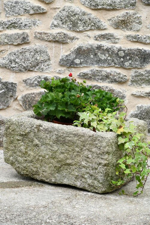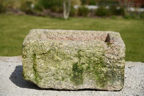Antique Granite Stone Trough Planter. 19th Century rectangular granite stone trough