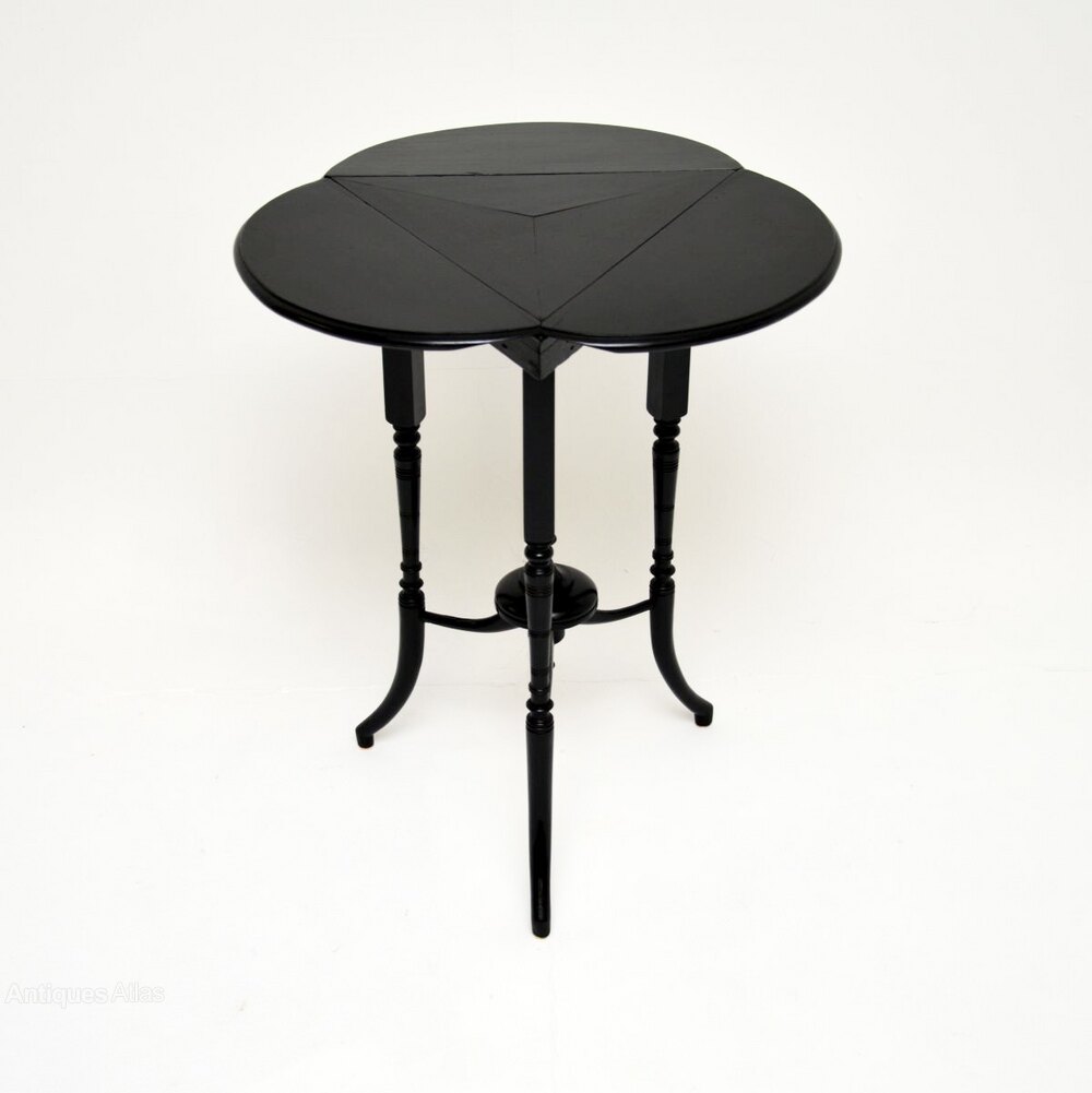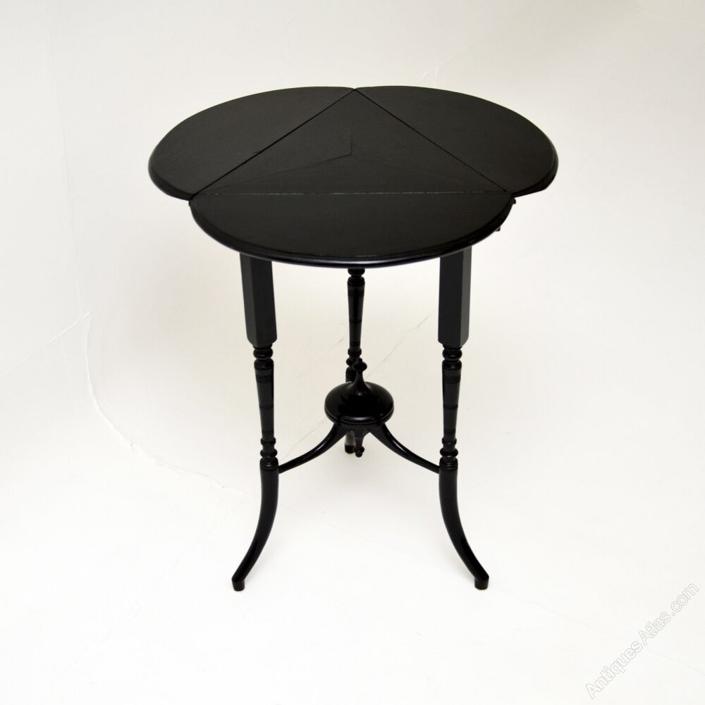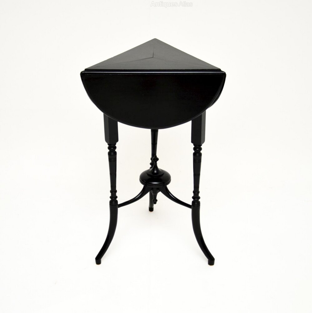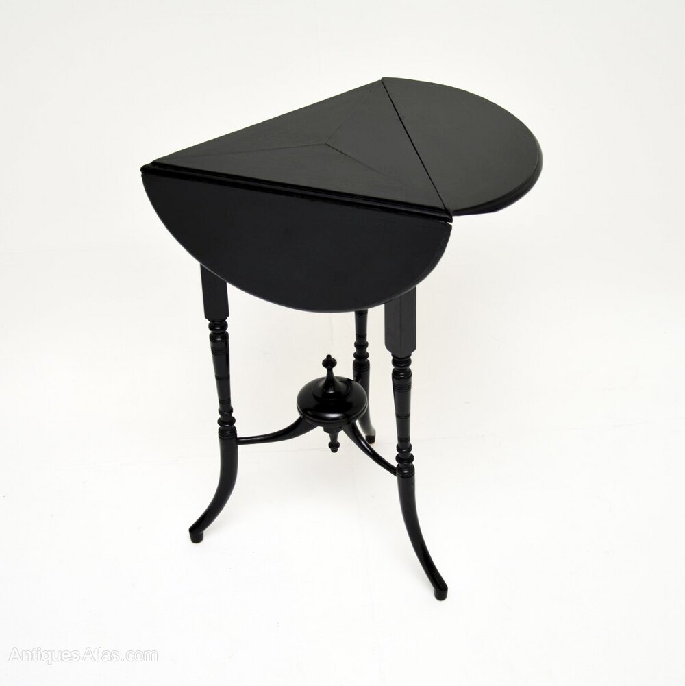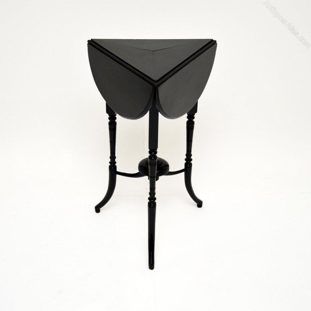 A fine quality antique Irish ebonised drop leaf side table. This was made in Ireland and dates from around the 1890-1900 period.