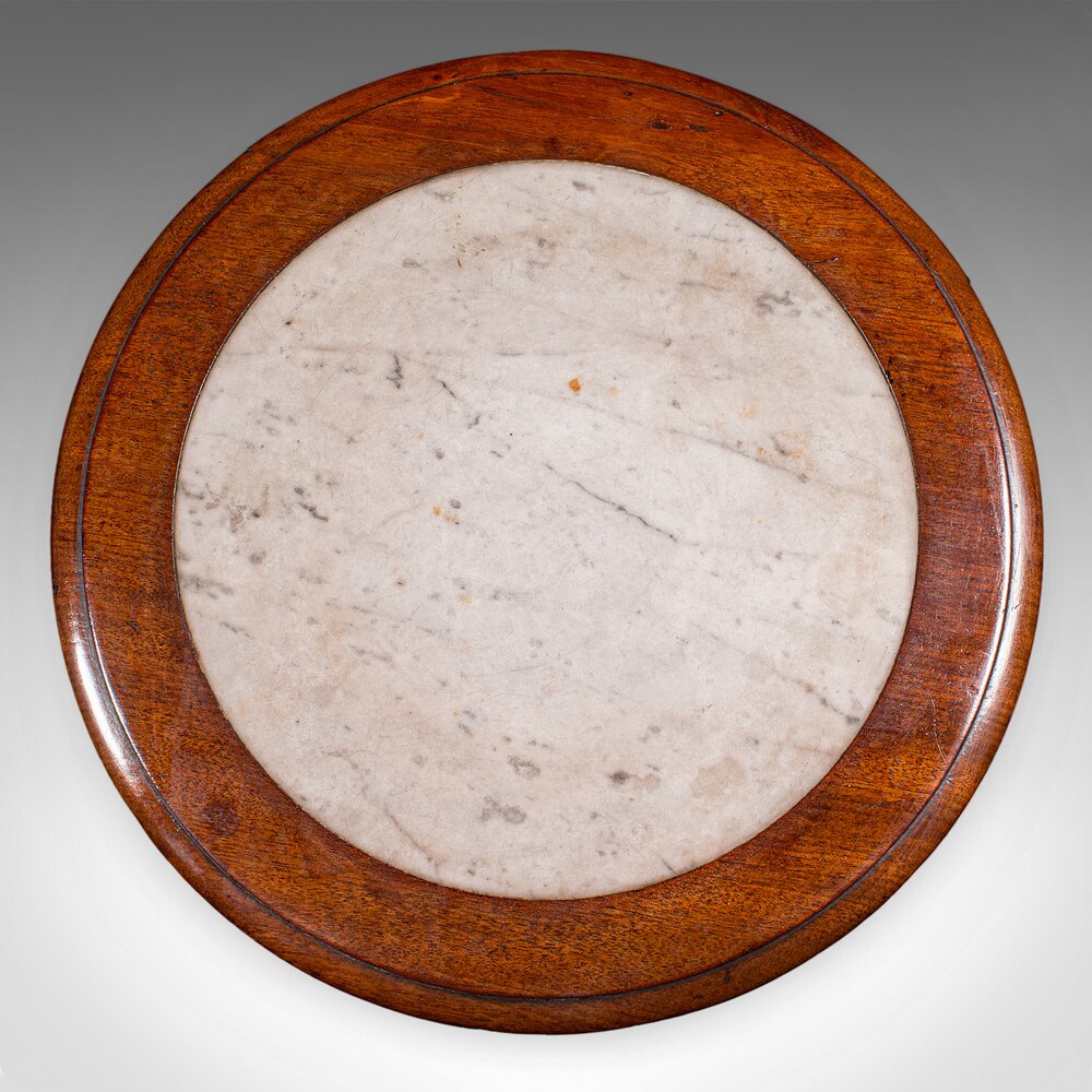 This is an antique jardiniere stand. An English, walnut and marble lamp or planter table, dating to the William IV period, circa 1835. A beautifully crafted example, offering superb material quality and a distinguished decorative presence.