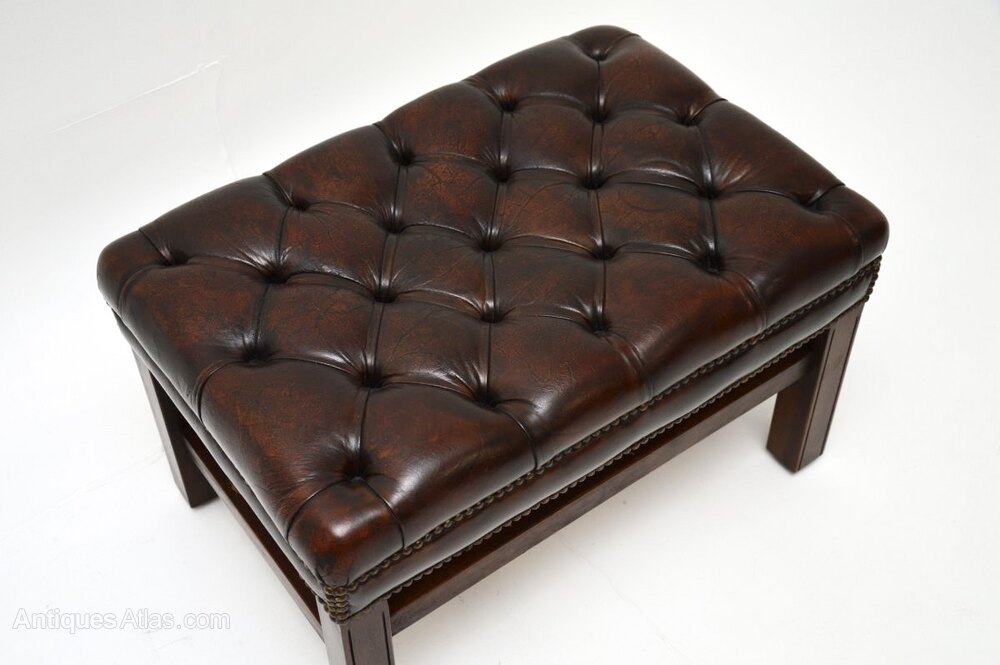 A fantastic antique leather and mahogany stool. This is in the classic Georgian style, it was made in England and dates from around the 1920-1930’s period.