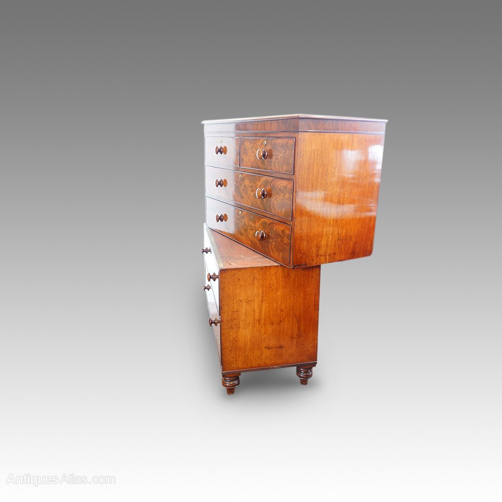 Antique Mahogany 2 Part Chest Of Drawers