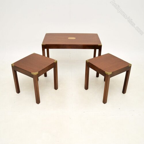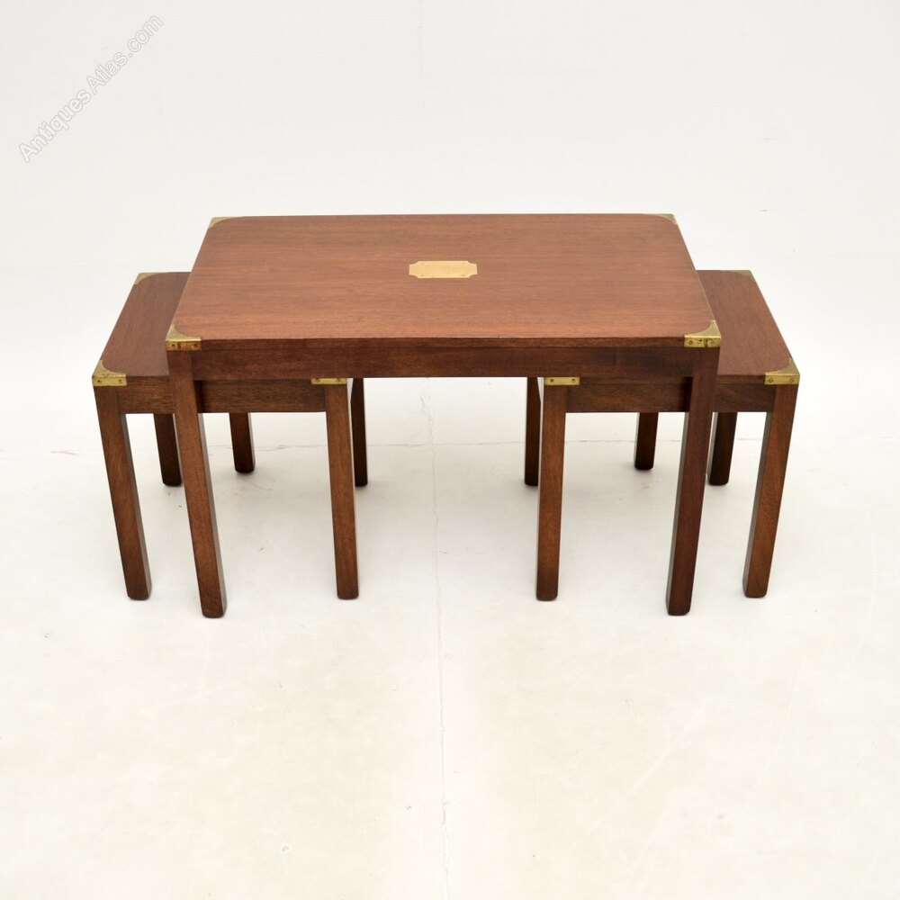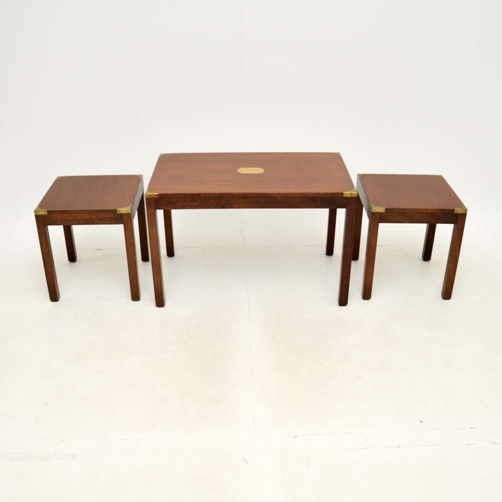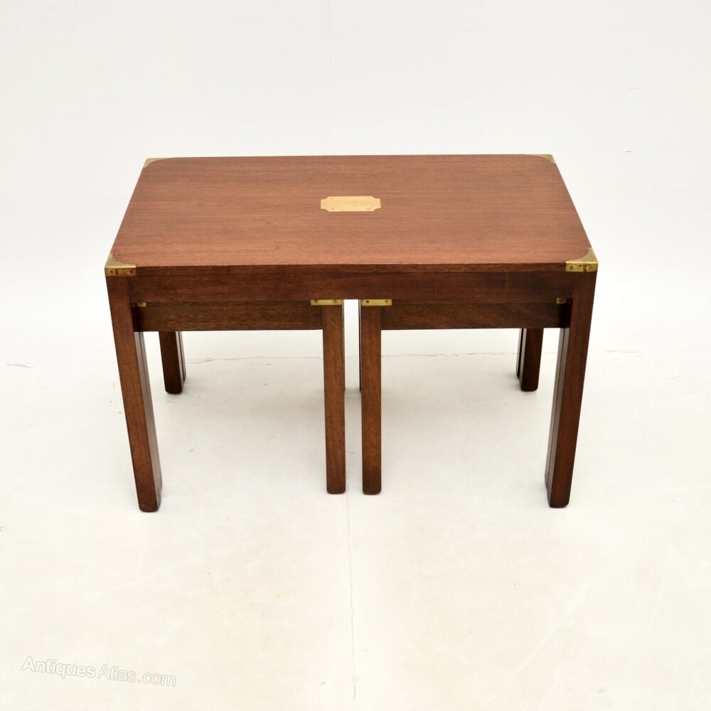 A wonderful antique mahogany military campaign nesting coffee table / side tables. These were made in England, they date from around the 1930’s.