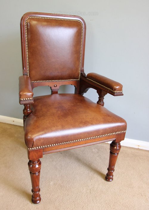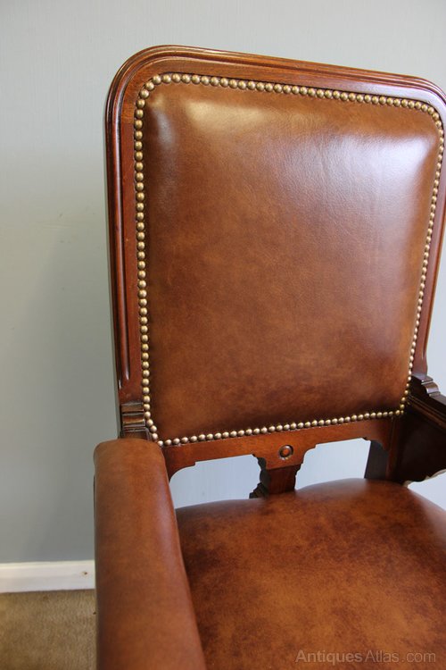 Antique Mahogany Leather Library Desk Chair.