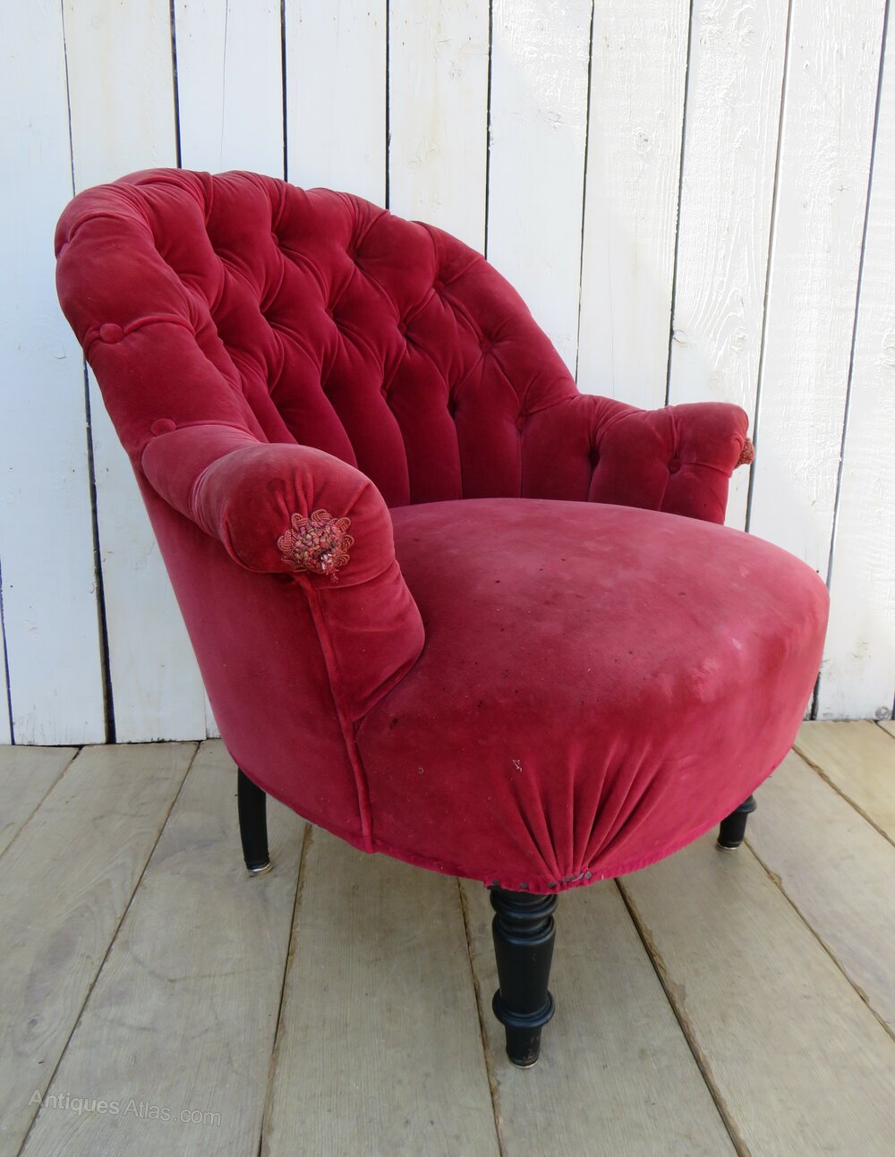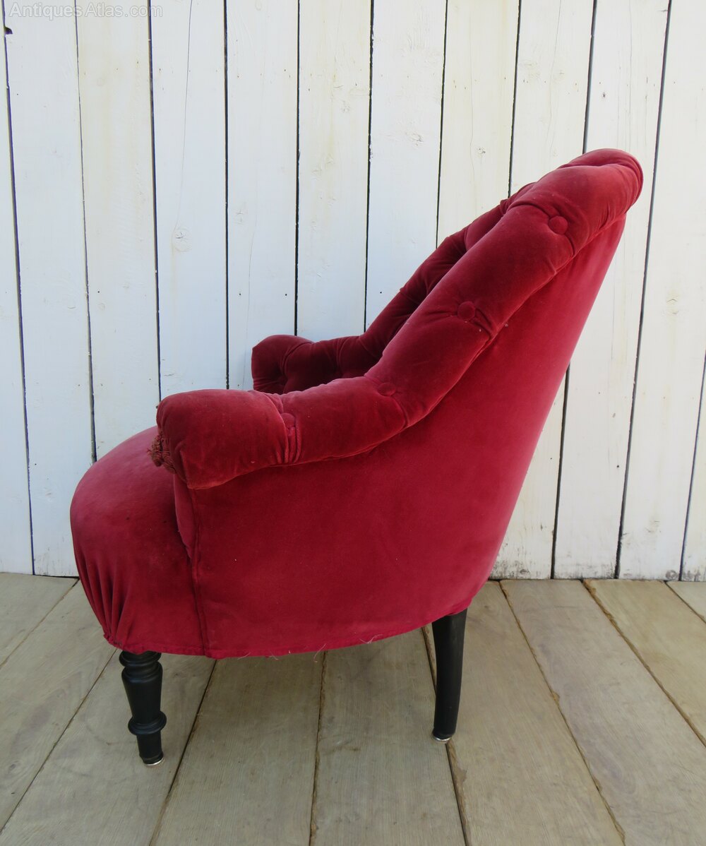 Antique Napoleon III Button Back Tub Chair