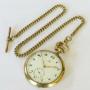 The watch measures 48mm diameter excluding the winding stem and the loop. The case is gold plated. The front is in good condition, there is some rubbing to the back of the watch.