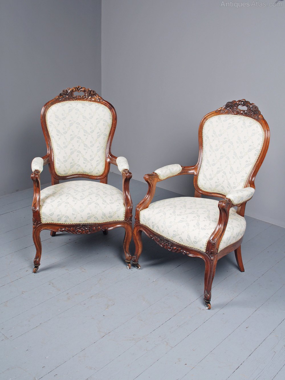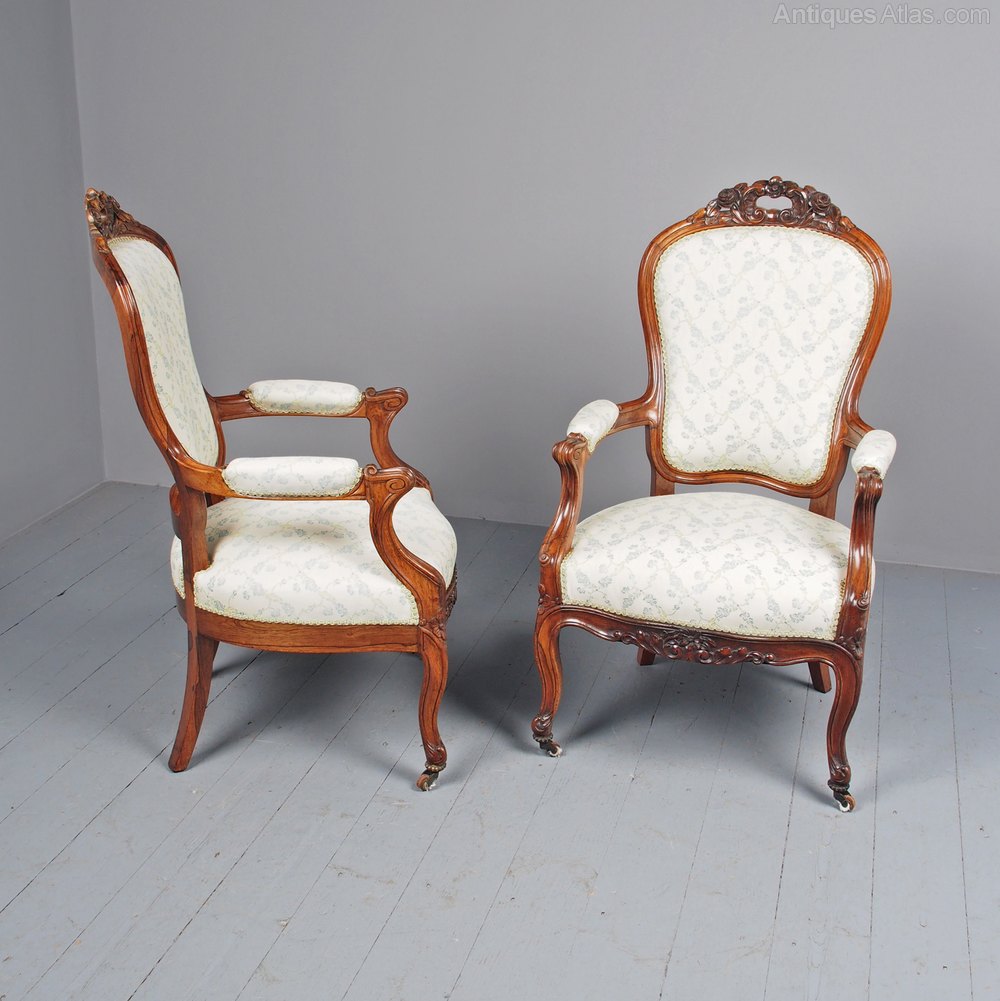 Antique Pair of French Rosewood Armchairs