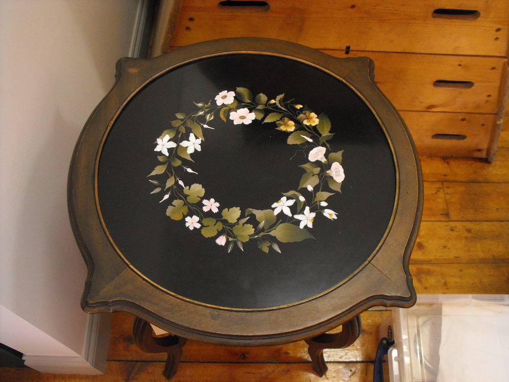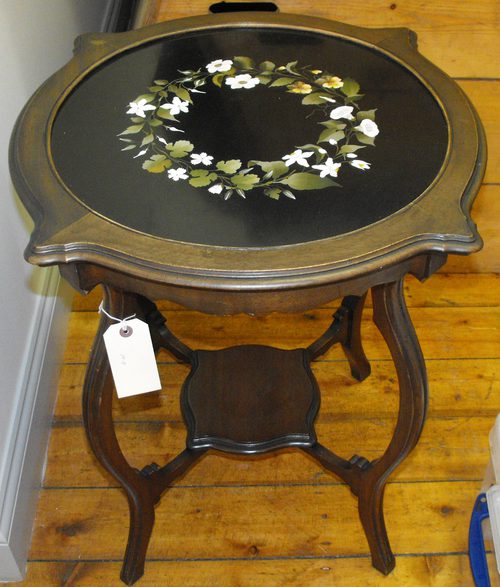 A Antique Pietra Dura Insert set in an Mahogany Table.