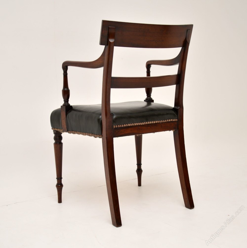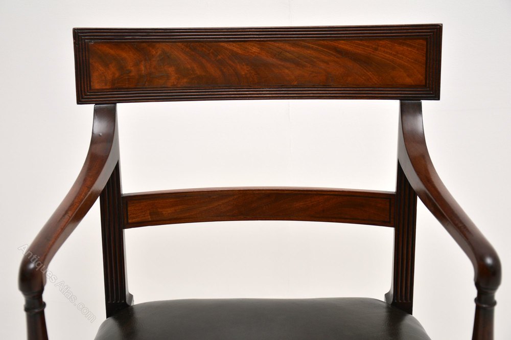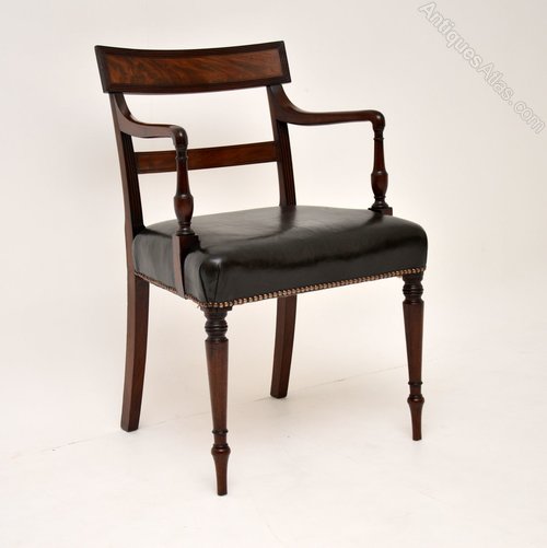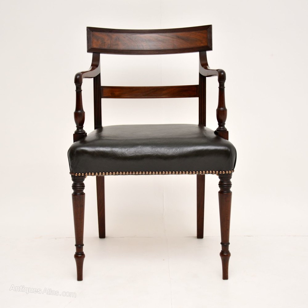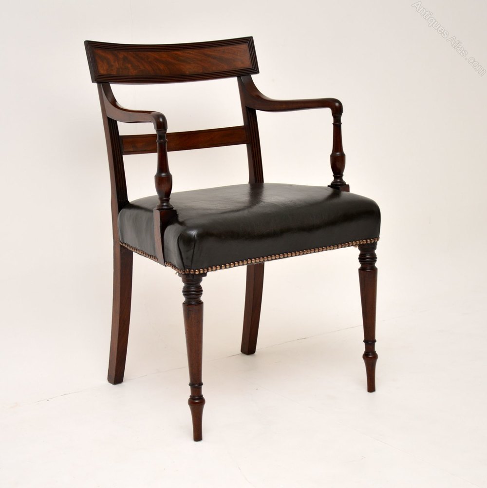 A stunning original Regency period carver chair, dating from the 1810-20 period. This is beautifully made from solid mahogany, with a leather seat.
