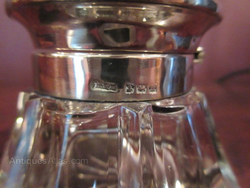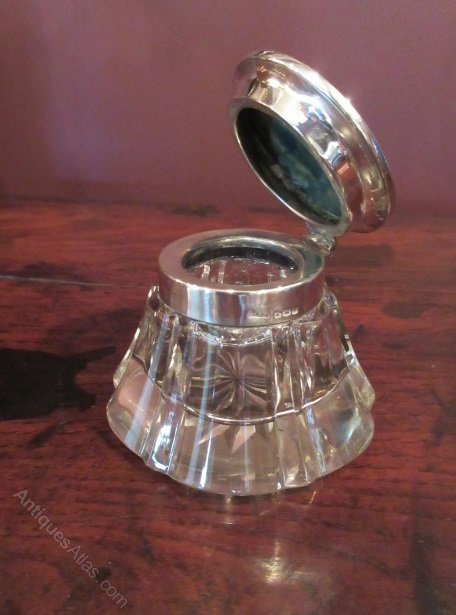Late Victorian Silver & Glass Desk Inkwell c1900