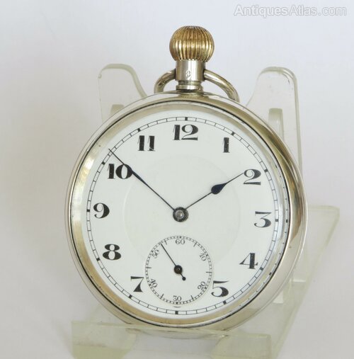The watch measures 50mm diameter excluding the winding crown and the loop. The case is silver and there are hallmarks inside both of the case backs for London (import mark) 1919 with a sponsor’s mark for George Stockwell.