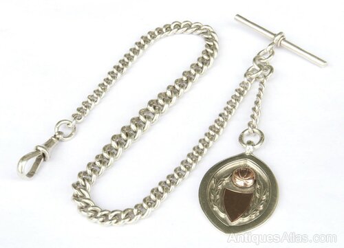 Victorian Heavy Duty Silver Watch Chain And Fob