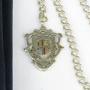 The chain comes with a heavy duty silver fob, hallmarked for 1890. It has the coat of arms for Queen Victoria, and was made to commemorate her Golden Jubilee, such items being produced between 1887 and 1892. There would originally have been enamel detail on the fob but some has fallen out over the years.