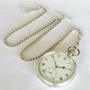 The watch has a Swiss stem-winding movement which is working nicely. The movement is protected by an inner hinged cover which has light surface marking.