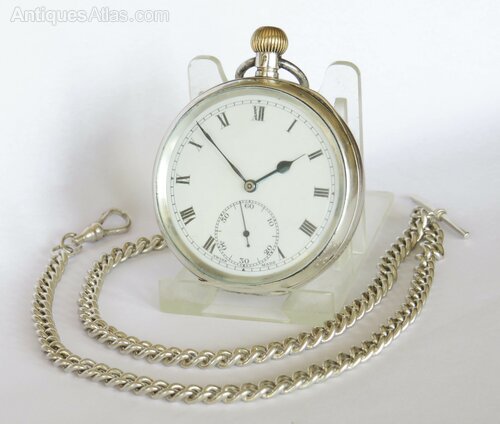 Heavy Antique Silver Pocket Watch Chain And Fob