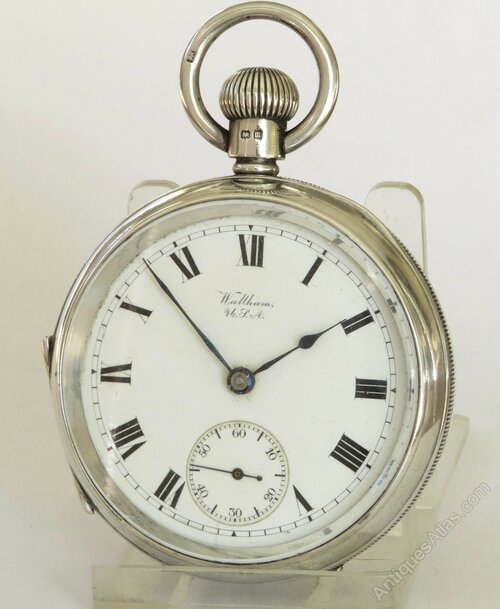 The watch measures 55mm diameter excluding the winding stem and the loop. The case is silver and there are hallmarks inside both of the case backs for Birningham 1911, with a case maker’s mark for Aaron Dennison, manufacturer of cases and suppliers to Waltham UK. The case is in good condition, just a slight indentation to the back, but all very acceptable.