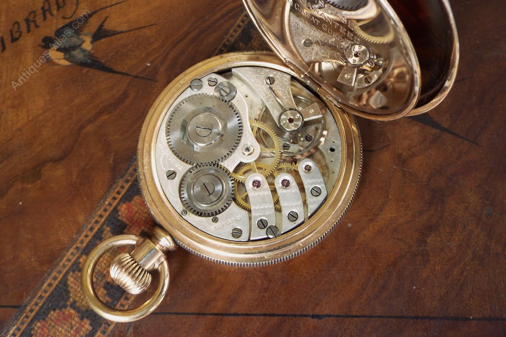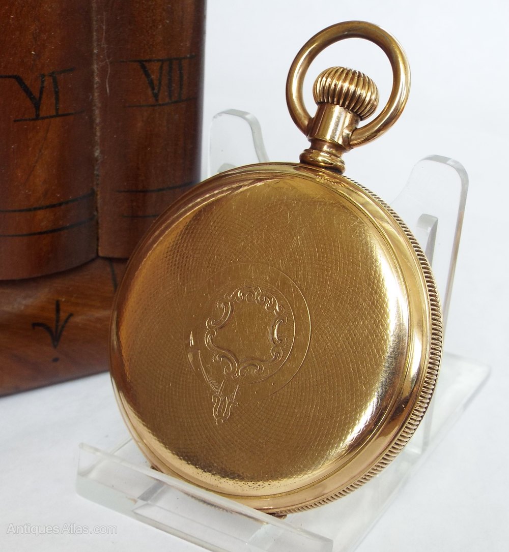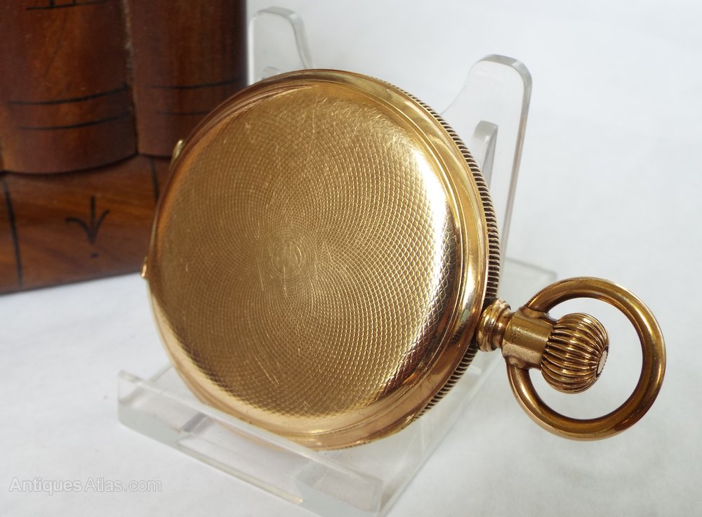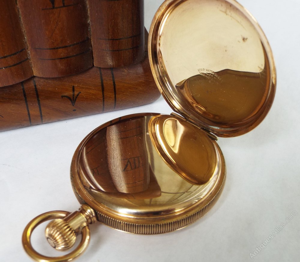 The watch itself measures 50mm diameter excluding the winding stem and the loop. The case is 10 carat gold and was made by the Star Watch Case Company of Michigan. The case has engine turned detail to both the front and the back of the case, and there is also a vacant cartouche to the front. The case is in good condition with just light marking from use, nothing detrimental at all.