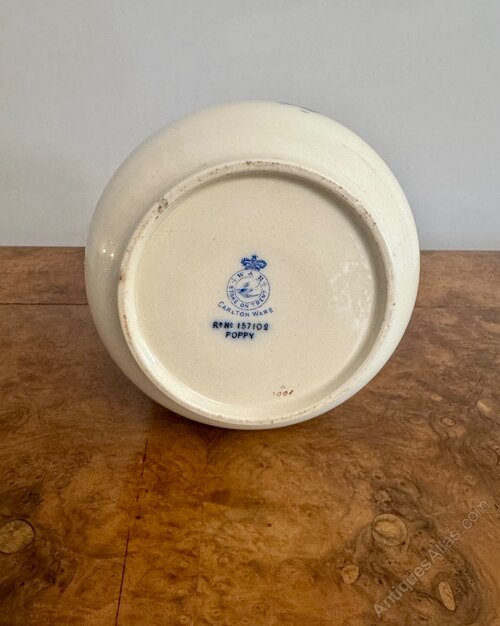 Stamped to the base as shown 'Carlton Ware' made in England, Poppy the design of the pattern Registration Number 157109.