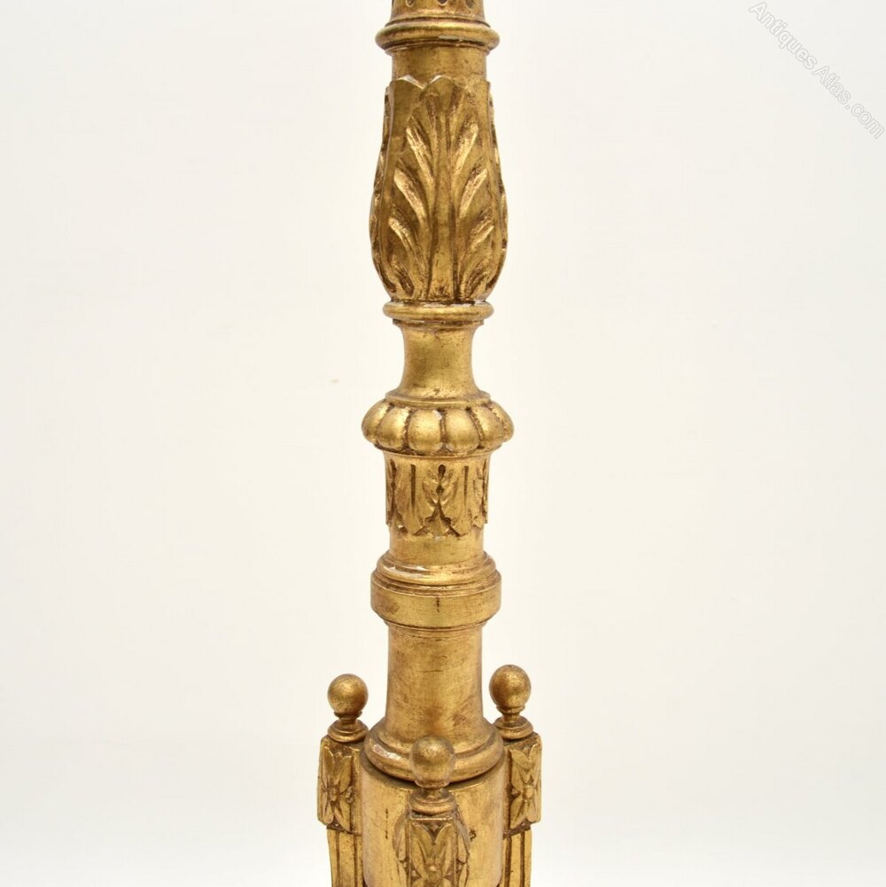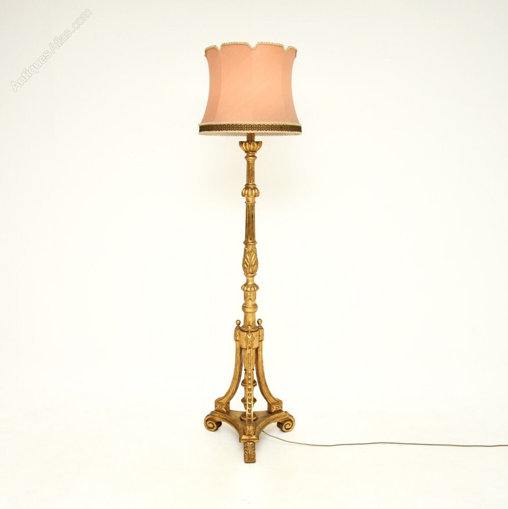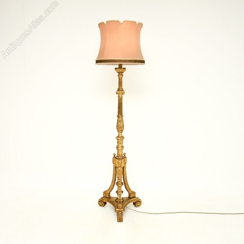 An absolutely stunning antique Victorian gilt wood floor lamp. This was made in England, it dates from around the 1890-1900 period.