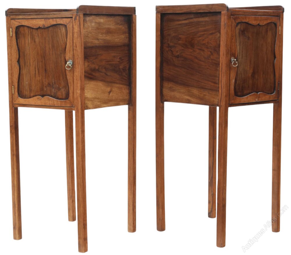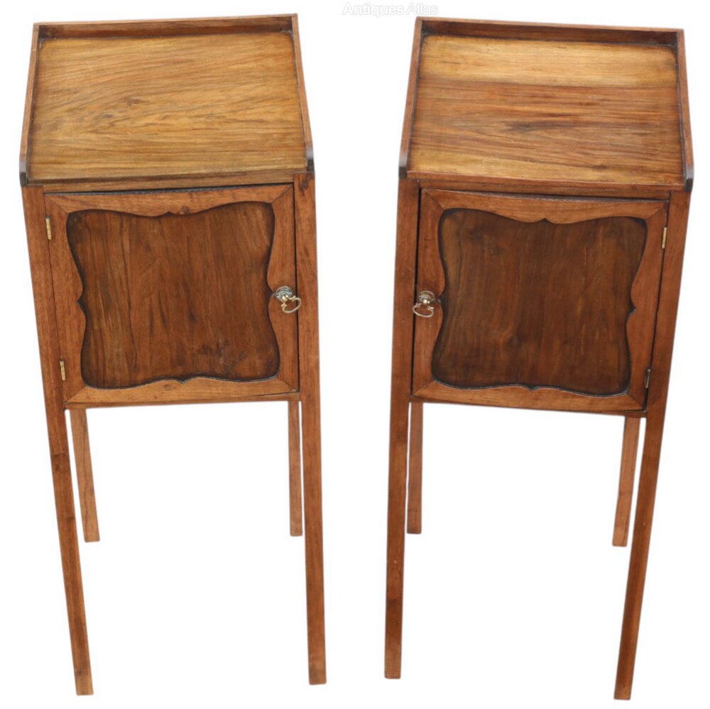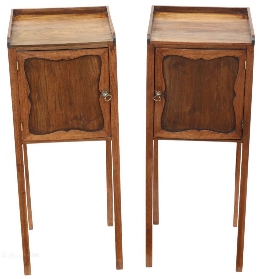 Antique Walnut Pair of Tray-Top Bedside Tables
