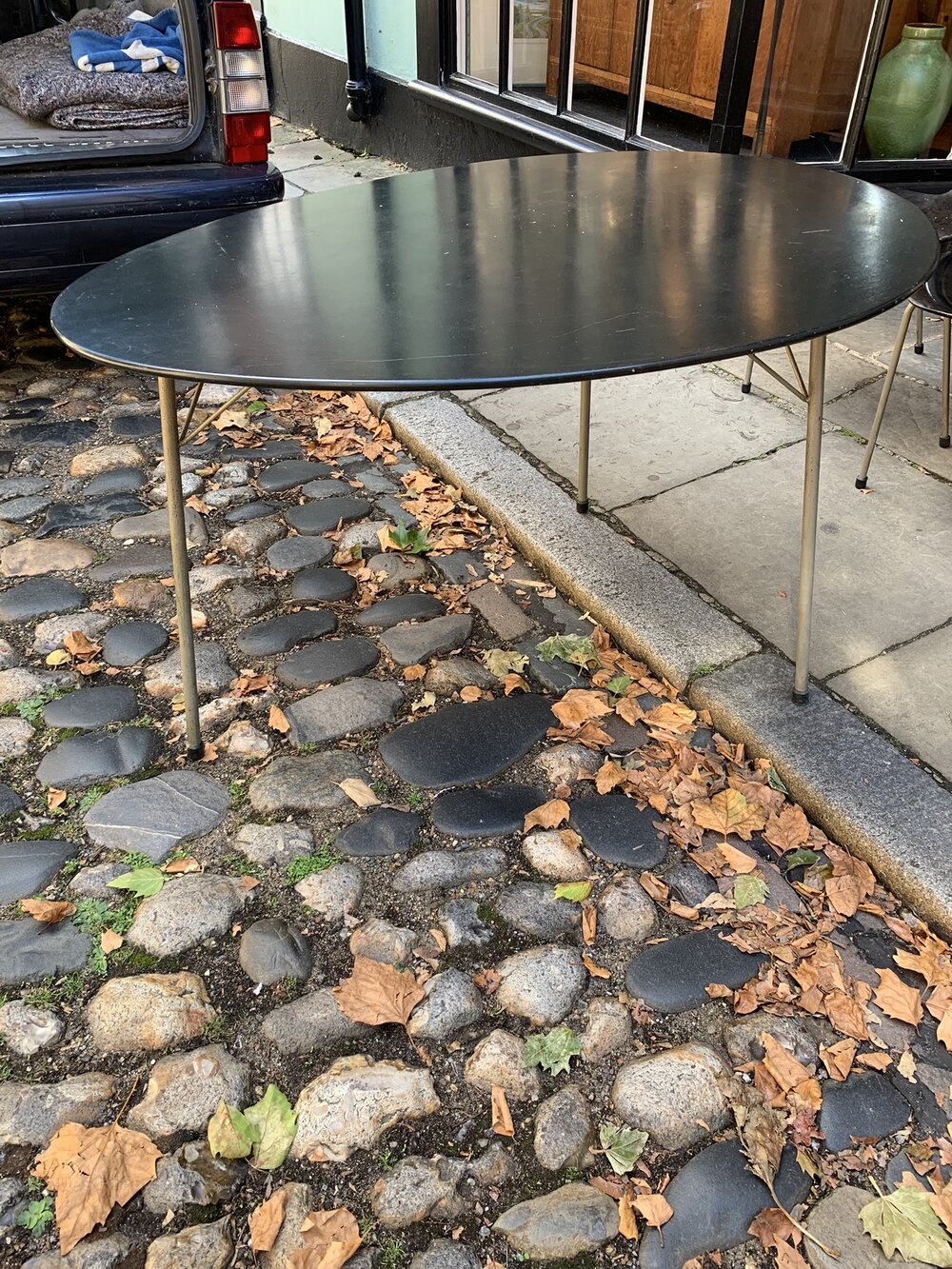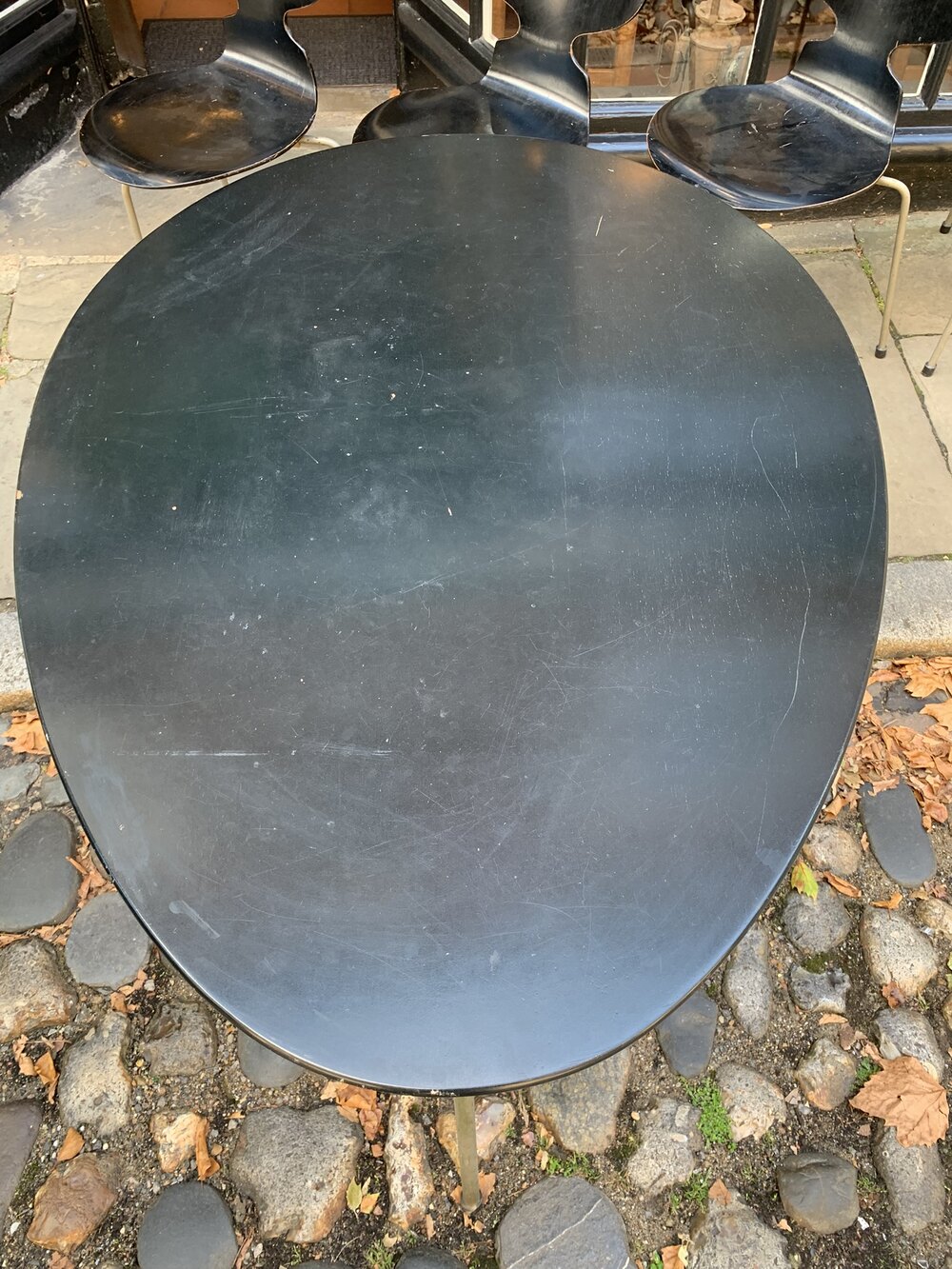 Arne Jacobsen for Fritz Hansen early 50s egg table and 4 ant chairs.