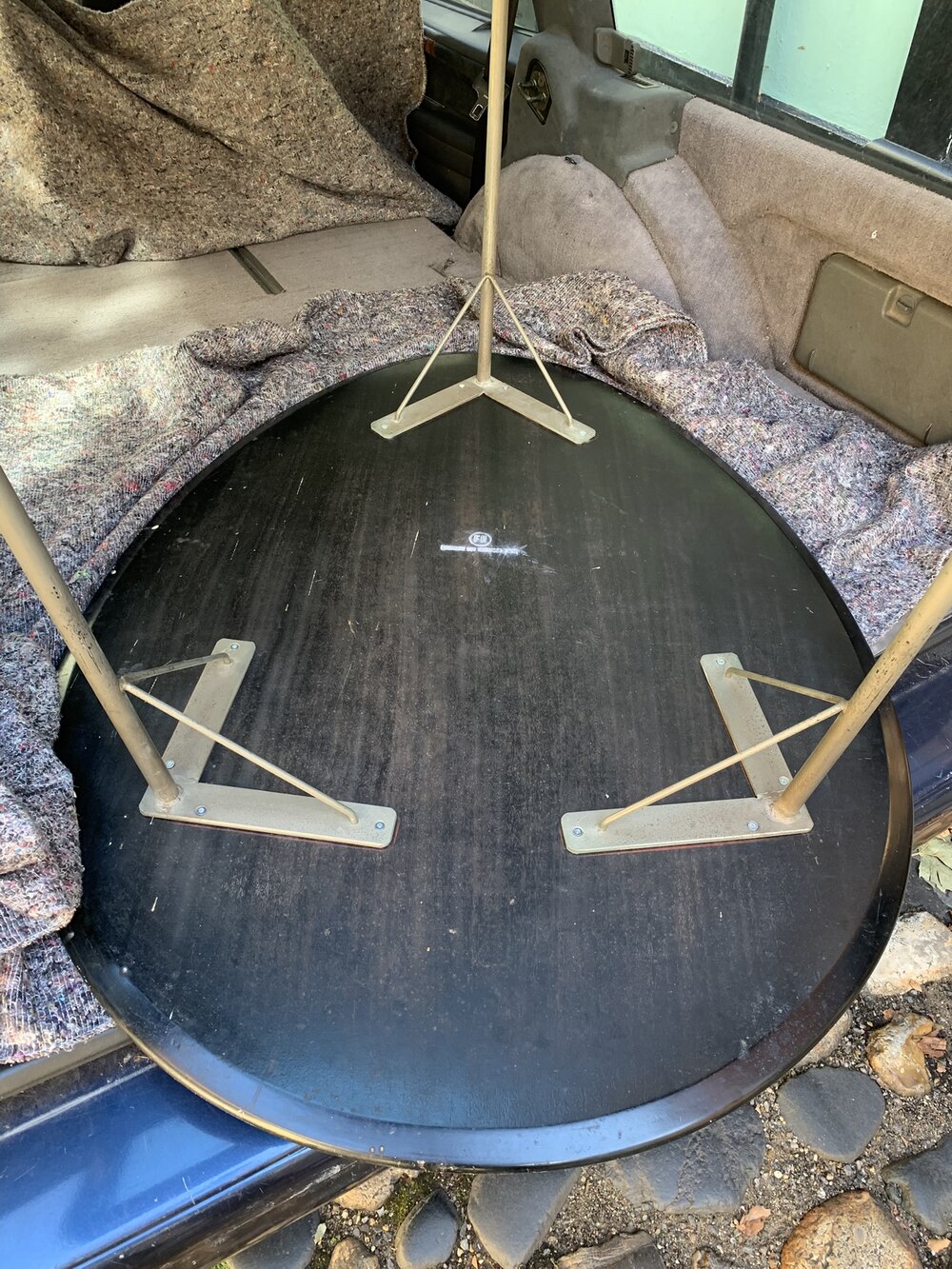 Unrestored condition original mid-gray painted steel legs with all the rubber toe caps.