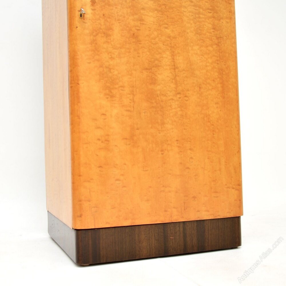 A beautiful and useful Art Deco birds eye maple and walnut cabinet. This was made in England, it dates from the 1930’s.