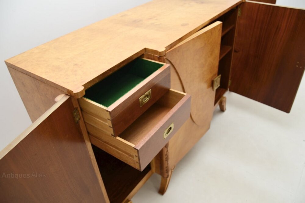 A magnificent Art Deco burr walnut sideboard by Hille. This was made in England, it dates from the 1920’s.