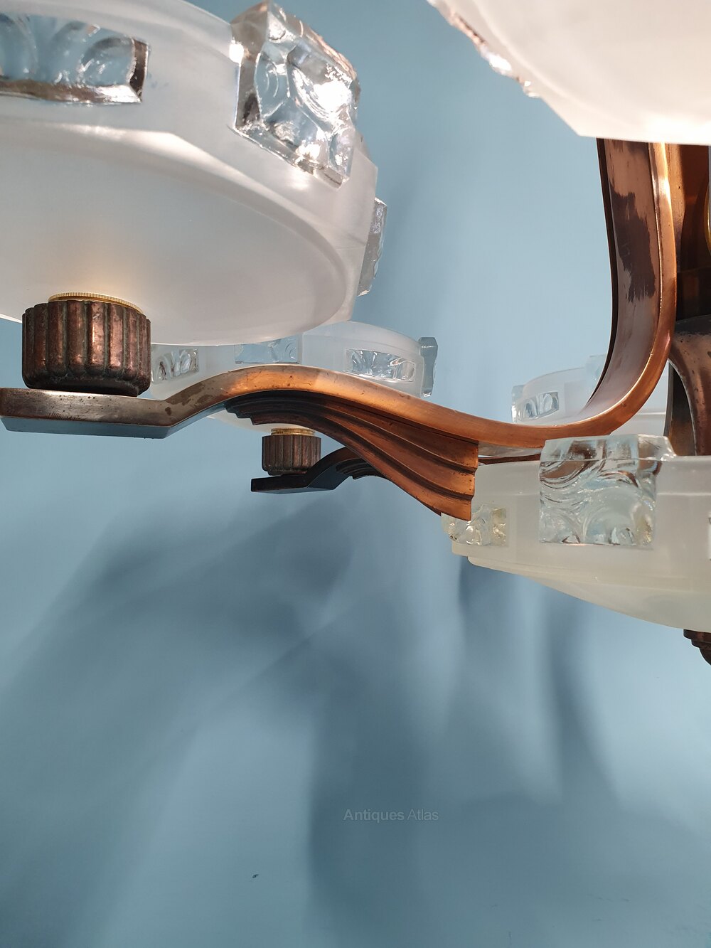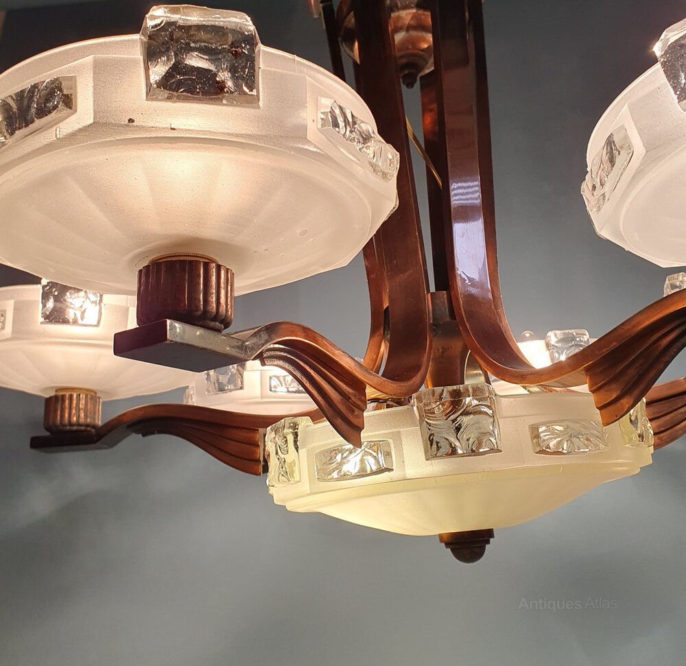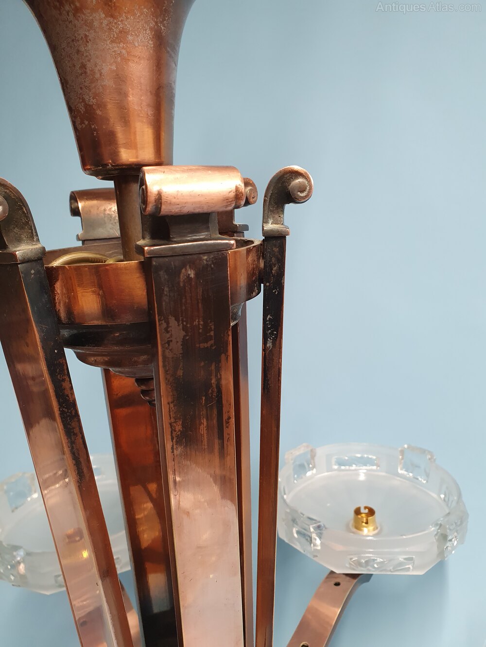 Art Deco Copper Chandelier Glass Bowls 34"