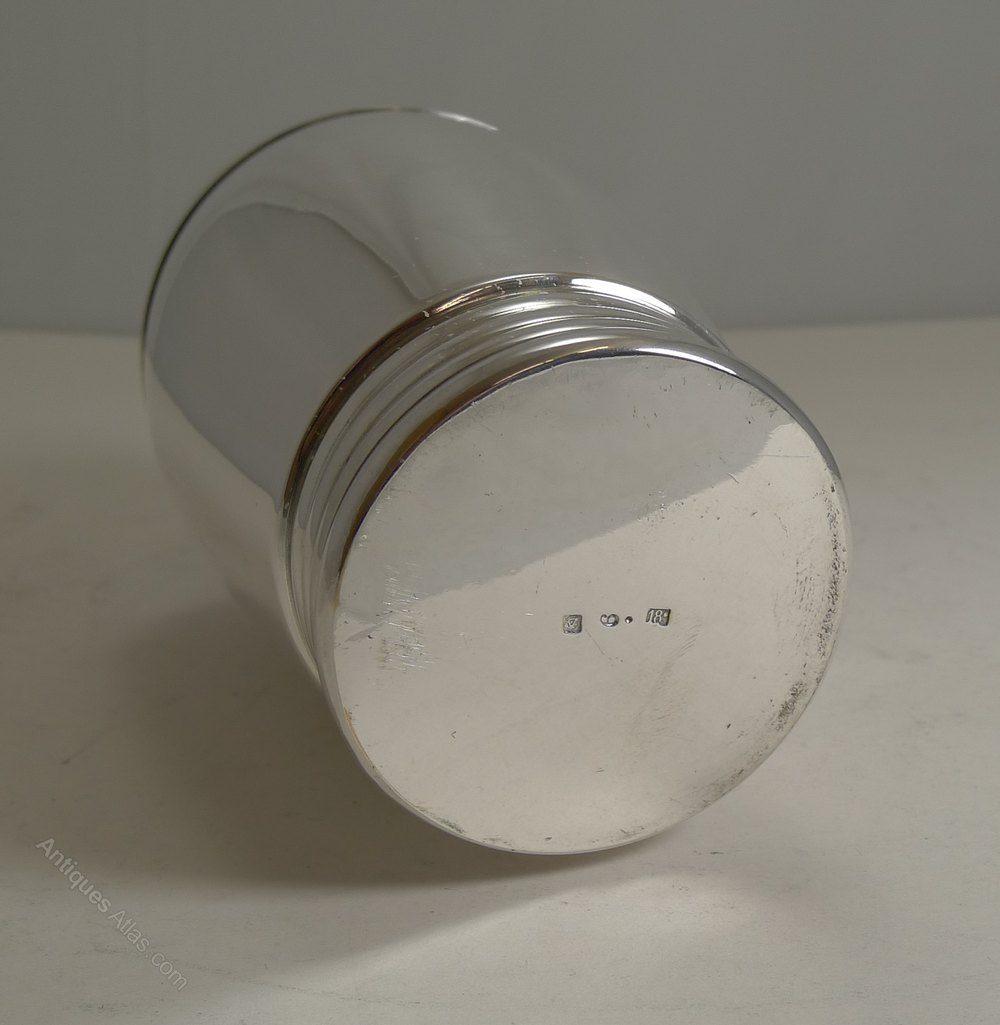 A fabulous quality French cocktail shaker, a hefty weight and solidly made. Just back from our silversmith, where it has been professionally refurbished to it's former glory.