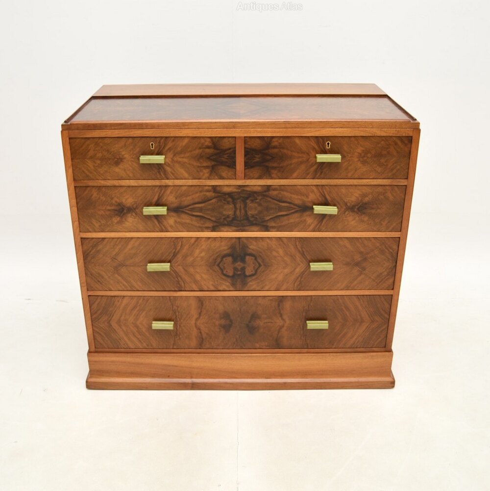 A superb Art Deco walnut chest of drawers by Hamptons of Pall Mall. This was made in England, it dates from the 1930’s.
