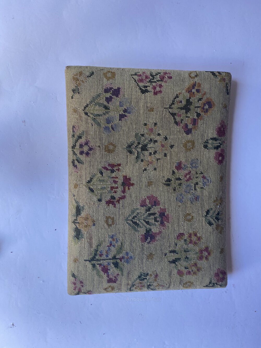 Early Victorian Sewing Box, Embroidered Foot Stool