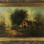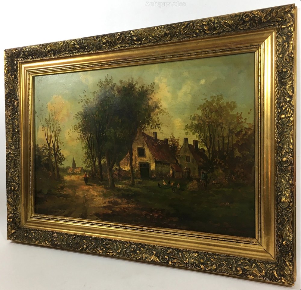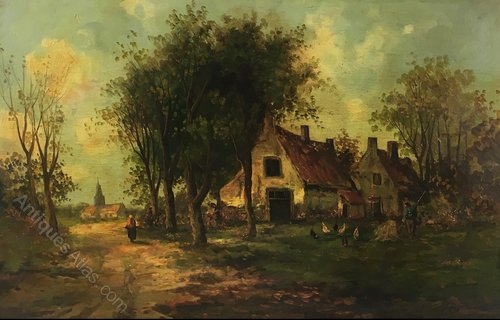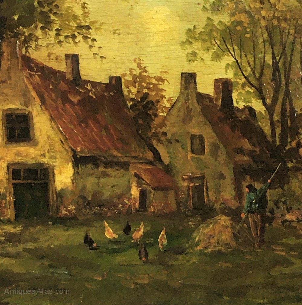 Barbizon School Rural Farmyard Landscape Oil Painting