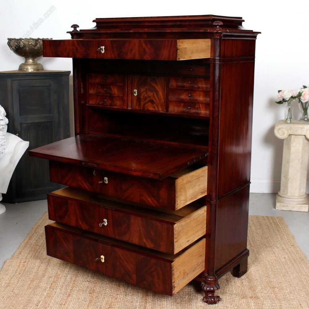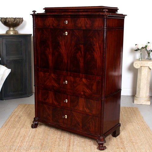 An impressive 19th century Danish Biedermeier secretaire chest.