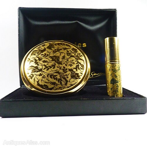 Vintage Lipstick Holder Compact Mirror Set 1970s