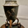 A Large Stunning Lamp with it’s original shade is in the style of a Georgian Japanese 3 Footed Urn standing on a Plinth, it has brass mask and ring handles