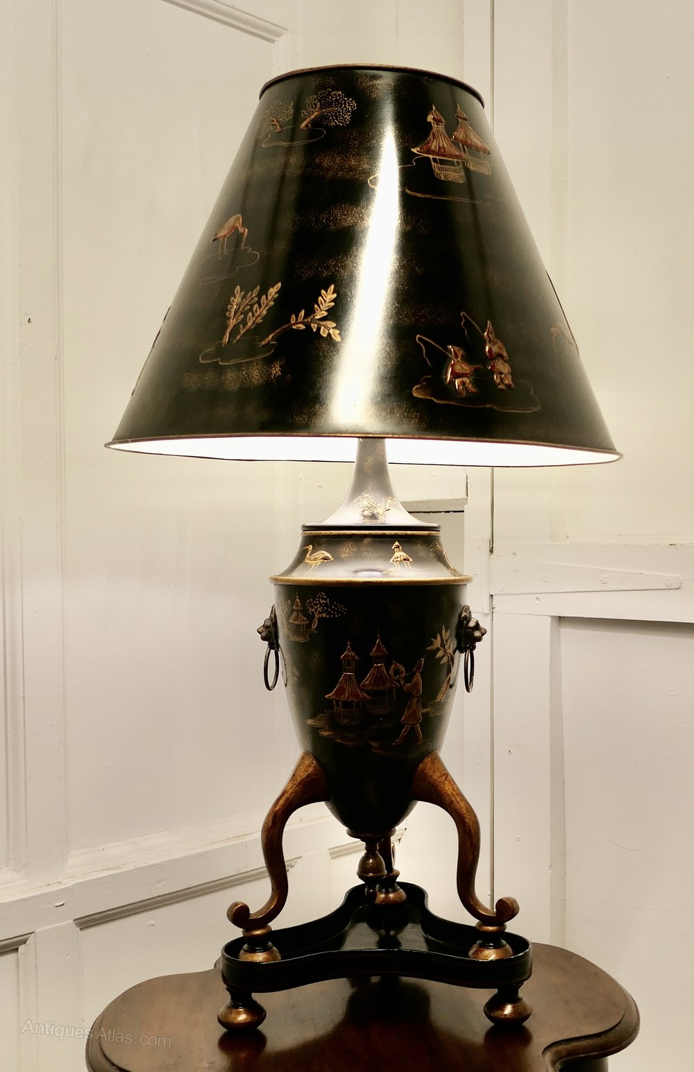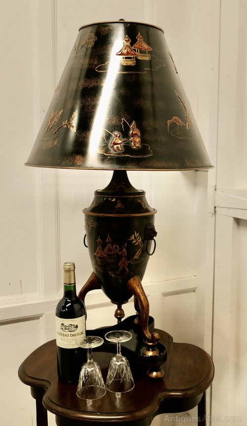 A Very Large Black, Gold and Red Chinoiserie Toleware Table Lamp