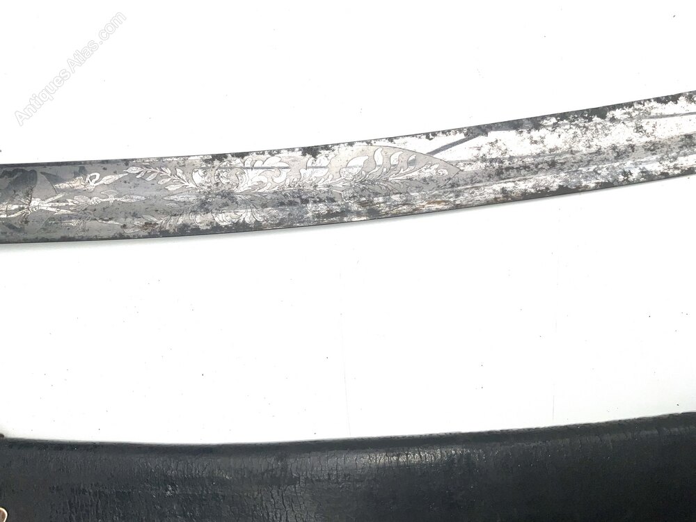 Officer of the British Army personel purchase of this fine engraved bladed 1796 pattern sabre, the blade has become tarnished and the leather scabbard shows its age the stitching has decayed overtime, the blade would restore as no rust showing on this beautiful engraved blade, Famed for its use by Britain’s Light Dragoons and Hussars during the Peninsular War and Waterloo, this sword was also supplied to the Prussian Cavalry in great numbers and even found favour in the USA.