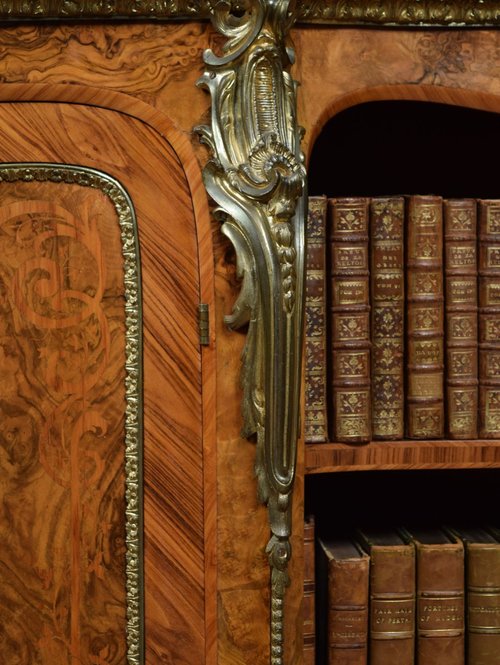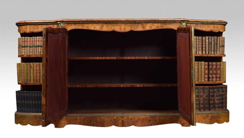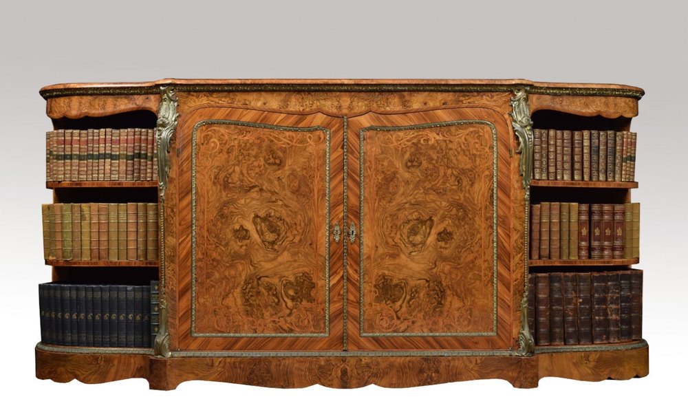 Victorian Burr Walnut Marquetry Inlaid Credenza