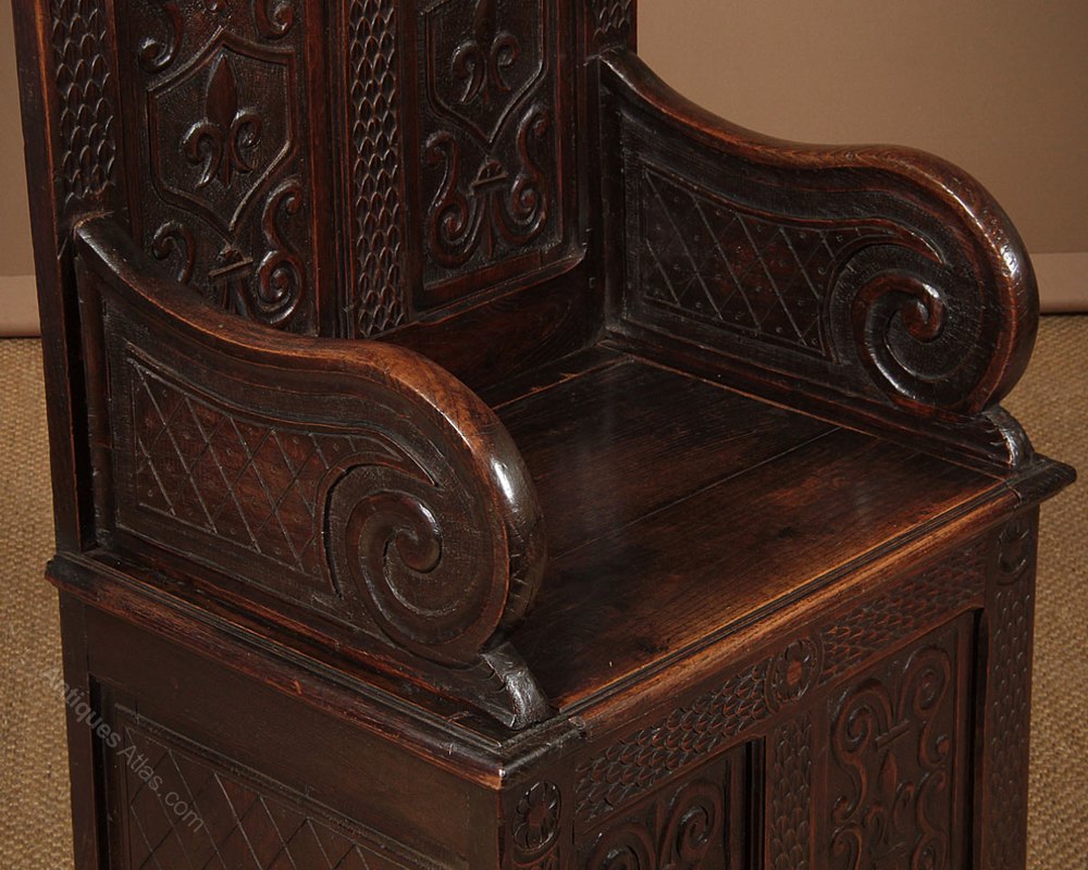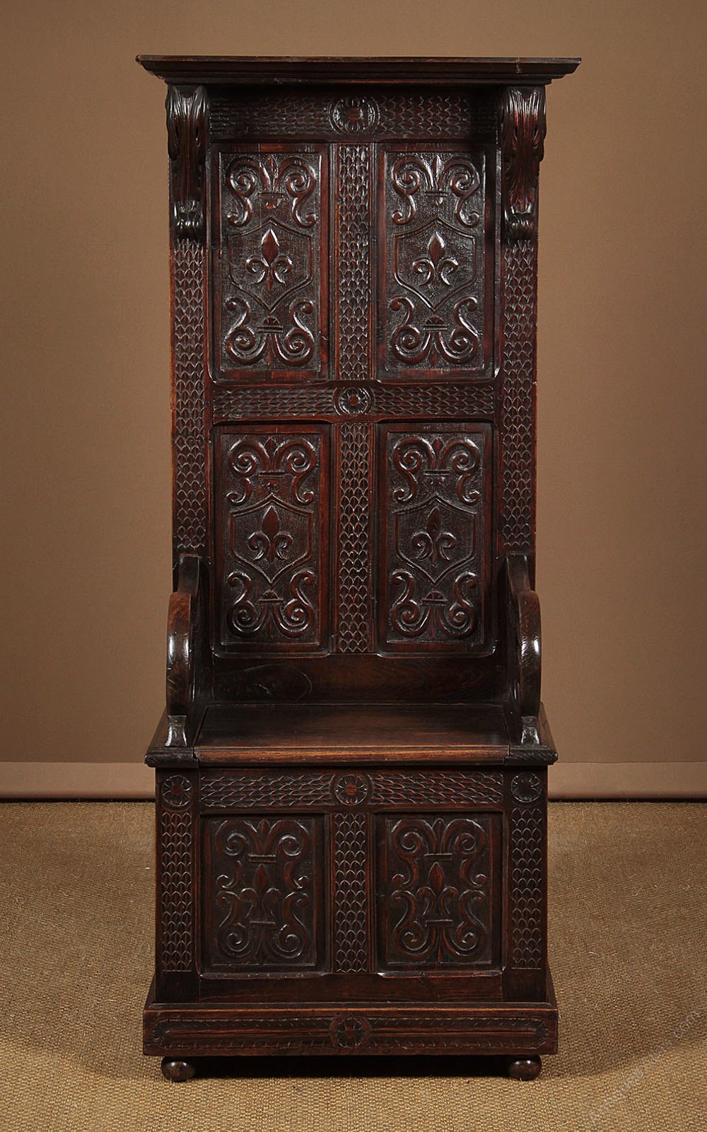 Carved Oak Box Seat Porter’s Chair c.1880.
